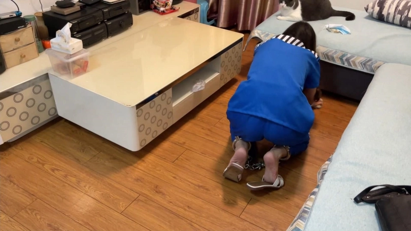 居家女囚洋洋的日常,全程脚镣加身,穿脱丝袜囚服,手戴死铐、裸足戴镣做家务,体验感自定义,沉浸式女囚生活