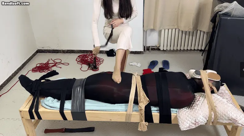 颜老师的虐粉实录,千里而来的粉丝,被颜老师欧式捆绑半吊抽屁股,然后又接下来用原味丝袜狠狠的全包起来 把粉丝放到了板床上,又用十几双丝袜把粉丝牢牢固定死,原味鞋子盖住脸,狠狠的榨汁,在颜老师的丝足下没有一个粉丝可以不被榨干就走!!!