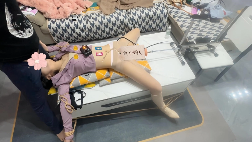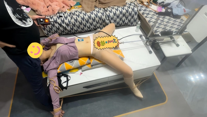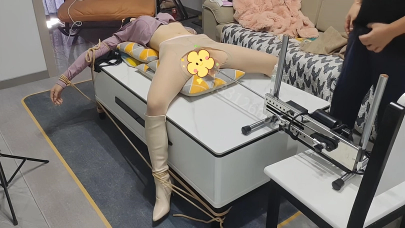 完美诠释了什么叫痛并快乐着!!!下面重型玩具的高速运转,上面强制打开口鼻,放入果冻和跳跳糖,四肢被无情的捆绑固定在桌子上。全程无尿点!唯一尿了的是最后m实在坚持不住了,测底羞耻的尿了一地!!!
