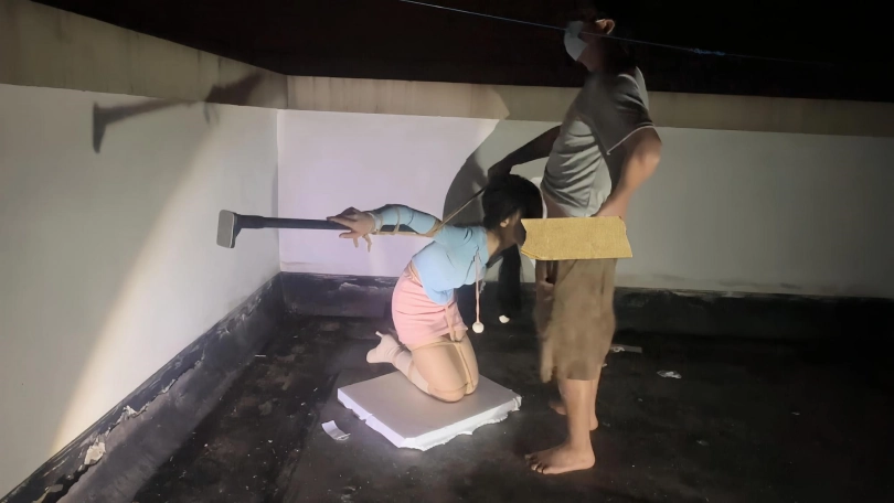 把m悬吊起来看她挣扎果然是最兴奋的,这样会突发奇想出来很多特别的调教方式,,比如说押到天台捆成十字架放置在黑夜中,然后再进行深度调教
