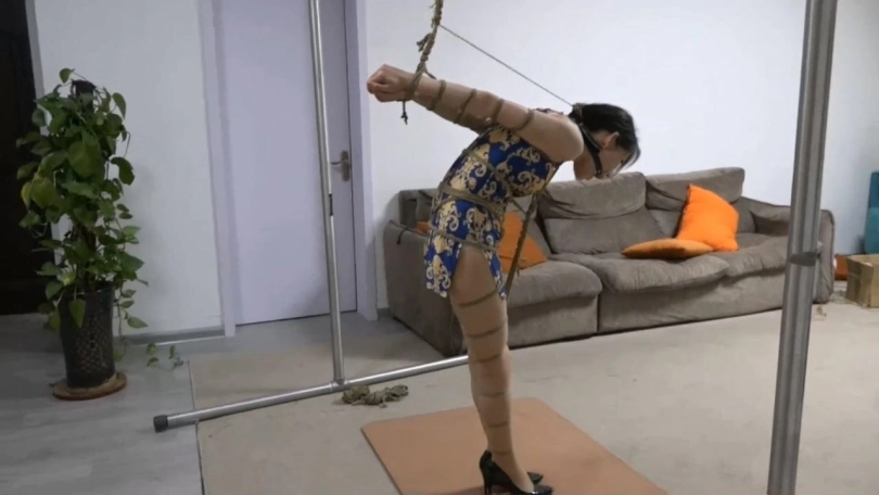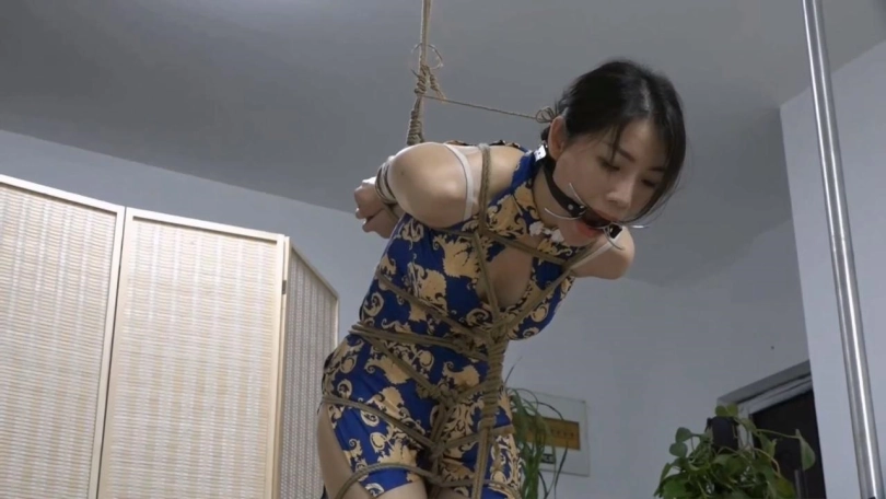 名模柳洋,紧身旗袍衬托着丰满的身材更加X感了。这次给柳洋绑上最紧的欧式直臂,后手高吊再用大口环堵嘴,口水一直流。