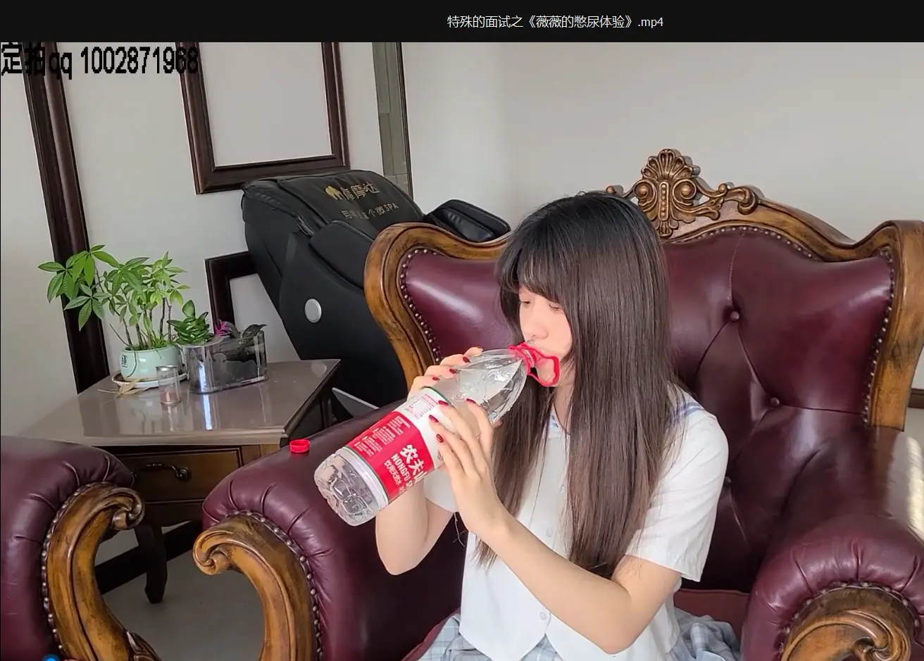 一家公司进行面试,女孩来应聘等待很久,公司为女孩准备了一大瓶水,女孩不知不觉的喝了很多水,可是面试一直没有到她,女孩顿感尿意十足想去卫生间,可是主考官却说中途不可以退场,你去卫生间就意味着被淘汰....女孩努力憋着憋着,直到最后憋不住失禁了.....