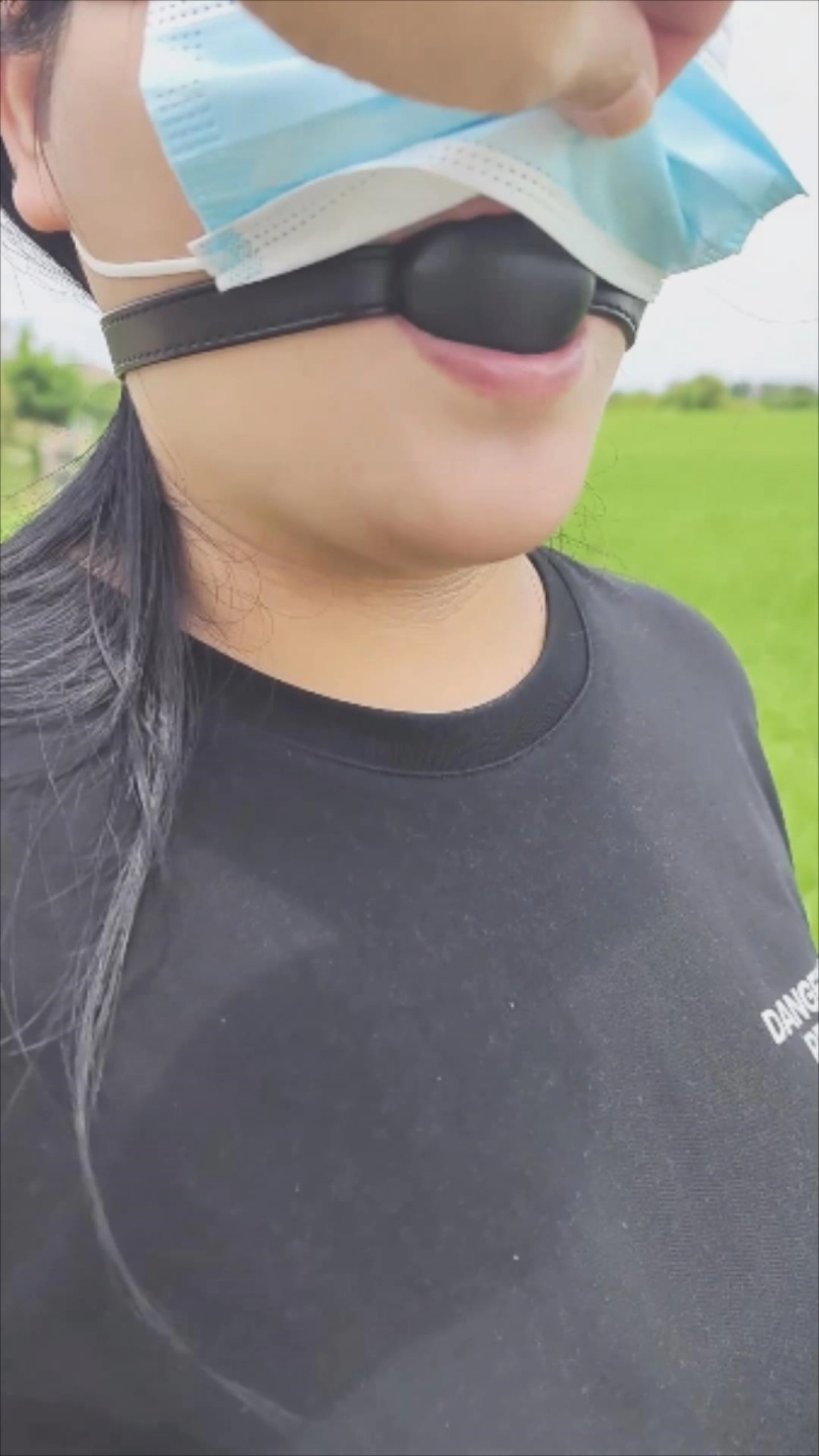 胖墩墩女生体验户外戴口球扎带捆绑出行,坦然面对行人,不好的就是当时下午实在有点热,回车上后帮我撸呀撸和口/J,回酒店继续接着玩。