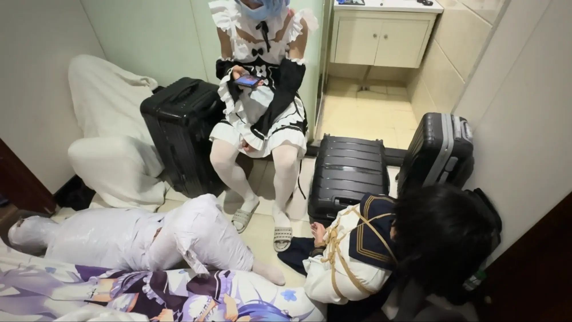 漫展结束后,约好互相捆绑的几人来到酒店房间,殊不知主持活动的蕾姆已经被闯入的人贩悄悄替换,毫不知情的男孩们正在落入假戏真做的陷阱……