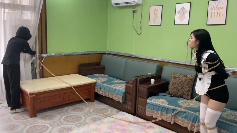 【视频时长】:00:11:26 【文件大小】:677MB 其实一开始是看漫展cos的一套性感女仆装,但没想到这次这么合适,超有趣具体的女仆调教日记,玩法新颖,吴晗美女表演依旧精彩。 美女背着手拿着毛刷在打扫沙发。被男人教训要诱惑一点。美女只能摆出诱惑的动作,摇摆屁股打扫。 多给一些特写 美女只能吃力的打扫。就在这时男人接到电话要离开。就拿了根长绳链接到美女身上。 男人离开,美女一开始还在继续打扫。但突然大门外有送外卖的。美女立马想求救,她扔下毛刷冲向大门,但被绳子拴住怎么都够不到门。模特差一点点就能碰到房门。 美女一阵求救挣扎,终于引起外卖的注意了。外卖进门吓了一跳。 外卖人员坐在沙发抚摸检查了美女身上的绑绳,以为是美女在玩什么sm游戏。美女更急切了,她赶忙解释,但因为堵着嘴巴说的含含糊糊的,外卖根本听不清。 美女拿出边上的杯子递给外卖,又拿出毛刷打扫沙发,她向外卖解释她被强迫在这里给人干活。 而外卖反而更认为她在玩什么主仆游戏,气的美女蹦蹦跳跳的。 最后美女干脆演示给外卖看拴住的绳子,演示她够不到大门逃不出去,外卖总算理解了,帮忙解开了另一端的绳子。就在美女开心的想逃出房间时,却反而外卖反而拽着绳子。根本不让她往前。 就在美女奇怪为什么的时候男人回来了,而外卖则向男人打招呼说老板好。原来他们是一伙的,这次是为了测试女仆的忠心程度。结果女仆一直想着逃跑,测试又失败了。 男人捏着美女的小脸说2次都失败了,她只能被降级为侍寝女仆了,会被安排在床上当主人的玩物。 ![]() ![]() ![]() ![]() ![]() ![]() ![]() ![]() ![]() ![]() ![]() ![]() ![]() ![]() ![]() ![]() ![]() ![]() ![]() ![]() ![]() ![]()