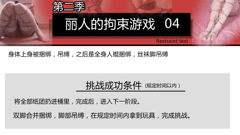 【视频时长】:00:39:09 【文件大小】:467MB 之前也做过同系列的,这次也发一部新的,丽人的拘束游戏主打的就是真实系游戏,很明显灵感来自日本的紧缚实验,只是玩法更多,希望大家喜欢。 游戏正式开始,穿着女仆装的美女上半身被完全捆绑,只有白丝美脚是自由的。 丽人的拘束游戏的特点就是真实性,只见美女艰难的用白丝小脚夹起纸团,然后用白丝脚趾把纸团夹入垃圾桶,非常真实的一段。当然,最后我们可怜的美女也累的香汗淋漓,白丝美腿酸痛无比。 没想到难度逐渐增加,可怜的美女又被吊缚起来,继续挑战游戏。 下面也是非常真实的一段,被吊缚的美女摇摇晃晃的,站都站不稳,跌跌撞撞的,难度增加了很多,非常有看点。 被固定位置的美女要够到身后的枕头,看起来非常简单的挑战,但其实很有难度。 美女刚想够身后的枕头,但立马发手臂是被和身体固定在一起的,所以在丝袜脚被固定位置后,怎么都够不到枕头,急的美女满头大汗。 美女想这样不是办法,她只能在有限的时间里浪费大量的世界来解开手腕上的绳子。 但解缚的时候,已经被自己浪费的没多少时间了,她赶紧去够枕头,但因为白丝美腿被固定捆绑的原因,每次差一点就能够到,急的美女呜呜直叫。。 最后挑战失败,美女被捆绑好开始挠痒惩罚,这段的非常有趣,无法反抗和躲避的美女,可怜的白丝美脚被挠痒了整整5分钟,美女最后的受不了了,非常有趣。 ![]() ![]() ![]() ![]() ![]() ![]() ![]() ![]() ![]() ![]() ![]() ![]() ![]() ![]() ![]() ![]() ![]() ![]() ![]() ![]() ![]() ![]() ![]() ![]()