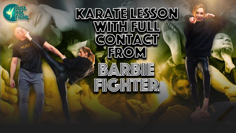 Olga demonstrates and explains various karate kicks in full contact. She first identifies and explains the kicks and then delivers a quick and whipping kick.