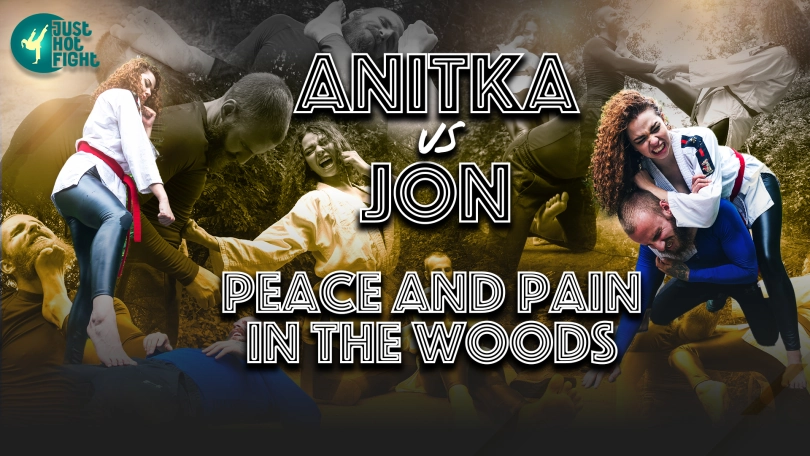Anitka practiced stretching and meditation in the woods. She was suddenly attacked by a man who wanted to strangle her. Anitka stabs him repeatedly in the groin, stomach and head.
