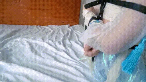 最近收拾衣服的时候把这套给翻出来了,所以索性再试了一次这样的捆绑。这次封嘴的胶布被换成了白色的肌肉贴,确实能明显感觉到更贴合更紧致的质感,有种小特别的体验。上身的皮带是在身后的钢环上套入了两个手腕束缚套,于是就变成了类似日式捆绑的那种捆绑方式,但是那种套子的材质很容易划伤皮肤,所以我其实不太喜欢它们...但是没办法,被绑的话很多时候很难有选择。然后又用上了td,我有慢慢把它往旁边推,有作用但不多...