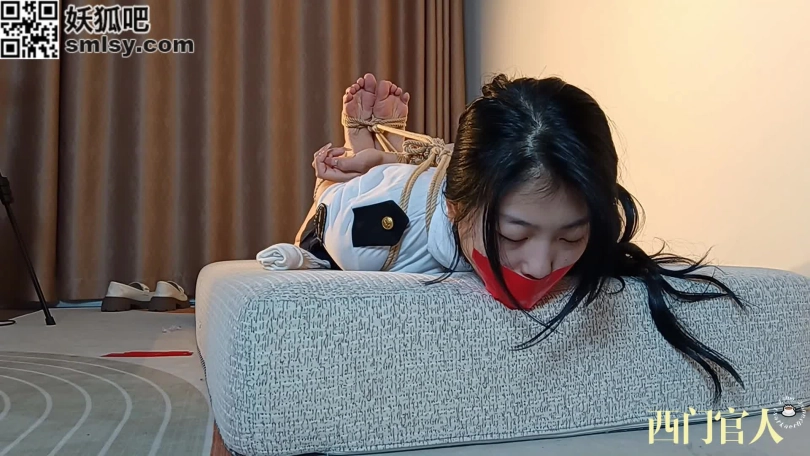 JK小姐姐做客,后手紧缚胸缚加股绳放置,后驷马放置,将两天没换的袜子脱下放在一旁,将一只袜子塞进嘴里并用胶布封号不许吐出来,加固脚上的驷马连紧放置一段时间。