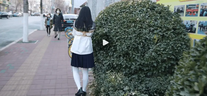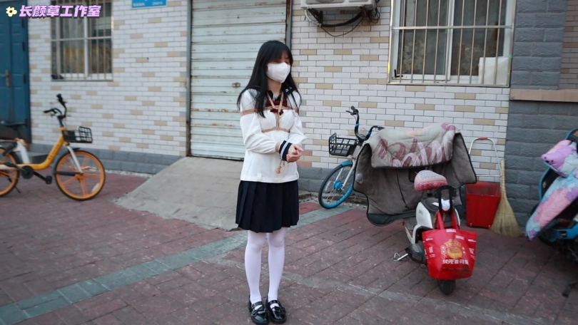 以前外出都是手放在背后和路人对过路人看清楚就已经走过了,这次尝试手放在前面捆绑,路人很远就能看见,小姐姐无处可躲