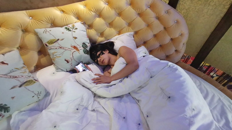 琳洛和凌熙是闺蜜,这天琳洛回来并向凌熙炫耀自己买的新款袜子,眼馋的凌熙想要穿上体验下,但小气的琳洛却不肯。于是凌熙趁着琳洛不在偷偷的穿了起来,并美滋滋的自拍,直到困意袭来睡去,这时琳洛出来看到睡着的凌熙腿上穿着自己都还没来得及穿的新袜子,心里很不爽,决定教训下她。趁着凌熙睡着用袜子把她全身捆绑起来。。。(丝袜、TK、丝袜堵嘴、绷带)
