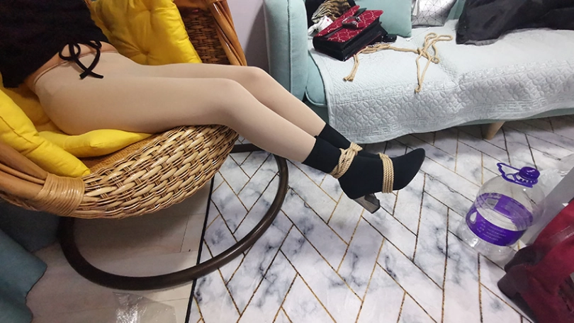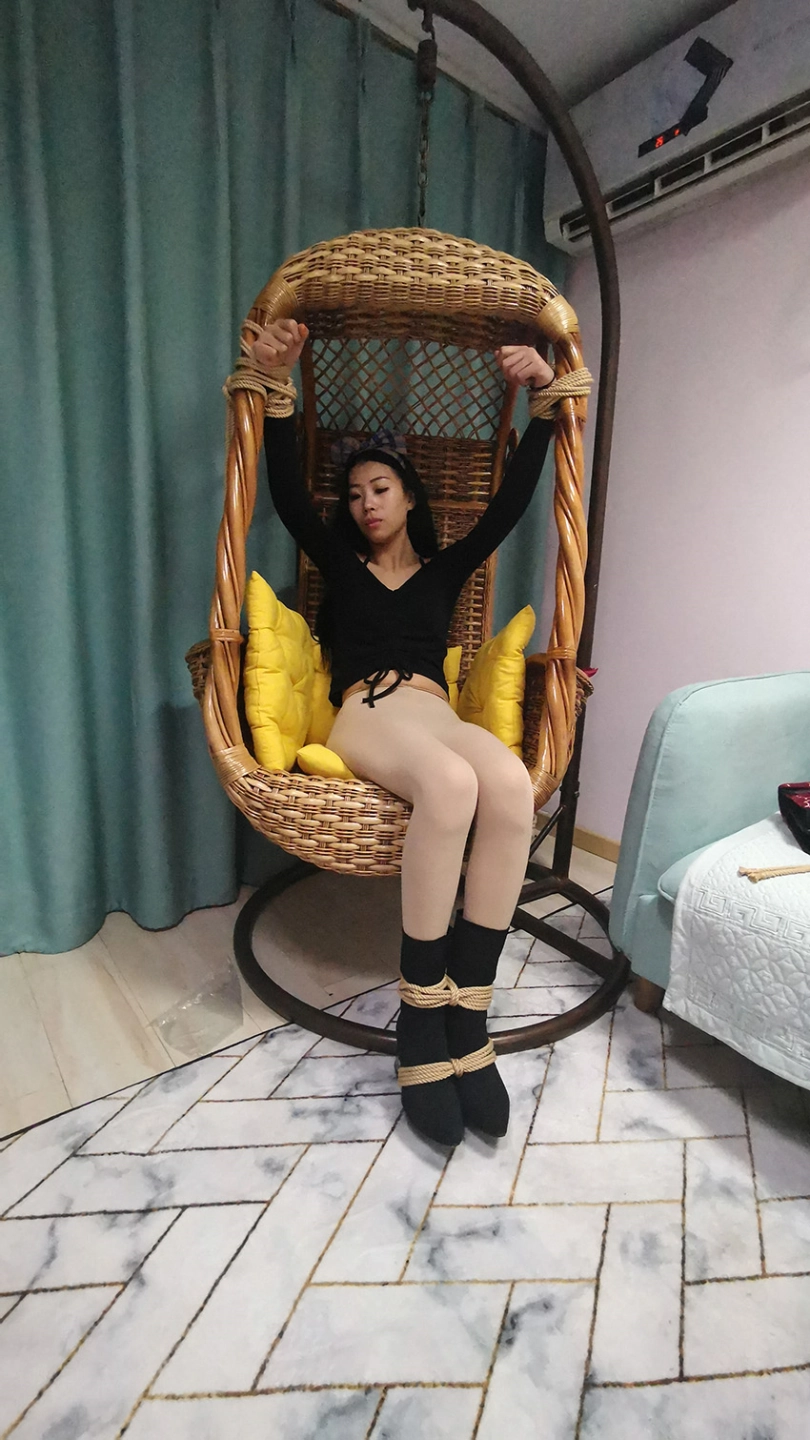 把她绑在吊椅上,带上口球和眼罩,胸部和[不可描述]分别用大小ZD棒伺候着,脱下靴子强制闻自己靴子的味道。并疯狂的闹其脚丫,一边被挠痒,一边身体敏感地方被刺激着,痒痒感和[不可描述]传来的快感同时体验着,只能无助的扭动脚丫和身体,最后慢慢变成无助的呻吟。。。