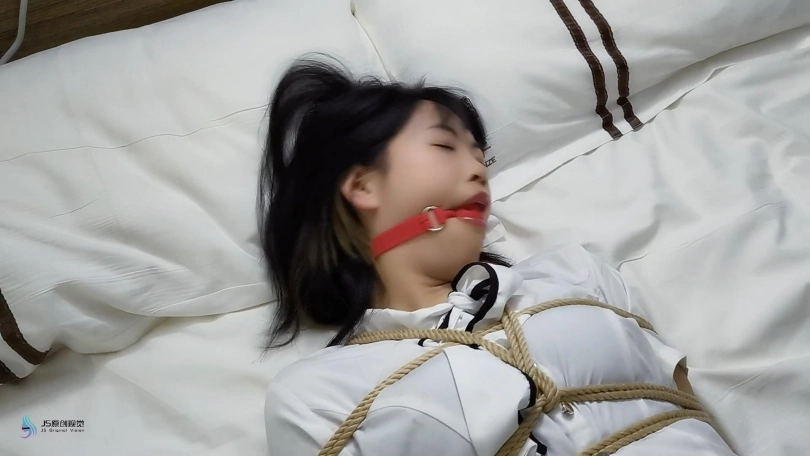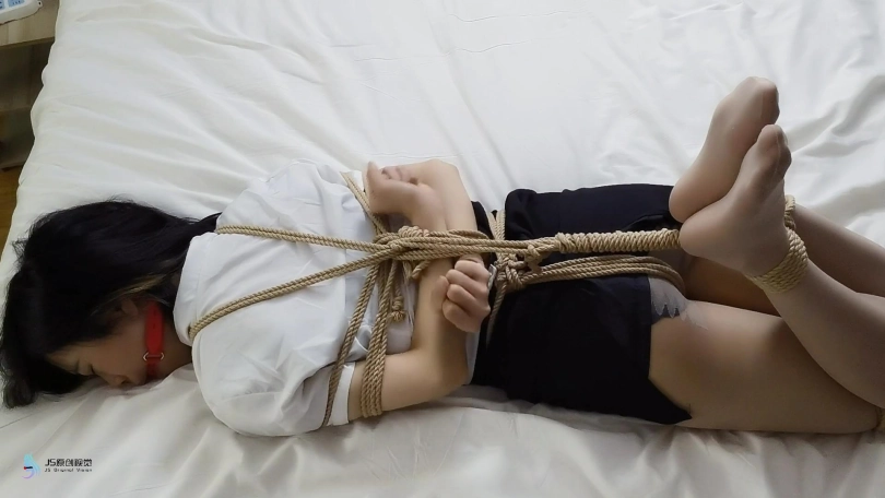 “激辣”来到出租屋,她坐在沙发上看着手机,但她不并不知道这是一间很恐怖的房子。一双邪恶的眼睛正在盯着她。从房间的角落里爬出一根绳子,慢慢的向她的方向移动。此时房间的灯光也开始一闪一闪的。就在绳子延伸到她的脚下时,她起身去重启了灯光的开关,灯光恢复了正常,“激辣”也暂时逃过一劫。当她回到沙发的时候,发现投影仪自己工作了起来。而投射在墙上的画面是一名全身被绳索紧紧束缚着的女孩在挣扎(是未来的“激辣”)。她揉了揉自己的眼睛,认为自己太累了产生的幻觉,便[X_X]睡觉休息。当她熟睡后,很多根绳子从角落里再次袭来,缠绕着“激辣”的脚,腿部,臀部,胸,手臂。而此时的“激辣”表情也很痛苦。是的,她在做梦,梦境中还是出现了那个被绳索紧紧束缚的女孩。当画面再次出现时,我们的主角“激辣”全身已经被多根绳索紧紧的捆绑着,她的嘴巴也被塞进一个口球。没错,这和她梦境中的情况是一样的。“激辣”醒来后很是惊恐,她不明白是怎么回事,自己怎么变成了这样。她用力的挣扎着,并试图呼救。但她嘴里这能发出“呜呜”的声音。随着她体能的消耗,这时走进一名男子。将“激辣”绑成一个驷马的姿势,并告诉“激辣”,他用很低的价格将房子租给年轻,漂亮的女孩们。再用施加魔法后的绳子束缚住她们。然后将她们当作奴隶贩卖给别人。男人让她不要在挣扎了,他会给她找个很好的主人。说完便离开了。此时的“激辣”知道这是一个阴谋,她用尽全身的力气去挣扎,但很显然绳子没有丝毫松动。看来她被贩卖成为别人的性奴将是她最后的结局。。。