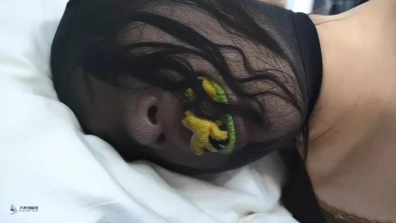 劫匪命令女孩脱去外套。并让她将一条开档的连裤袜当作上衣穿在身上。女孩的两条腿也被套在一条连裤袜中。劫匪用一天条裤袜将女孩的手臂背在后面,套在里面。并用多条丝袜将她捆绑起来。做完这些劫匪并没有打算停下的意思。他将女孩穿了一天刚脱下来的棉袜塞进了女孩的嘴里,并用丝袜套在她的头上。女孩无助的挣扎着。但袜子强烈的味道熏的女孩没有力气挣扎,无力的在床上躺着。。。
