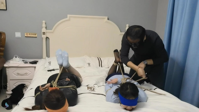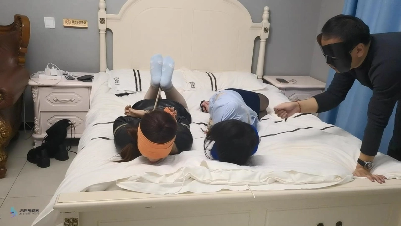 两名女孩回家,脱鞋[X_X]玩弄手机,玩累的她们睡了过去。这时一名歹徒闯进来,将两人捆绑起来。眼镜也给蒙上,嘴里都塞着口球。歹徒找到了一张银行卡,逼问密码。妹子不说,开始挠她们的脚底。歹徒得到密码后扬长而去。两个妹子不断的挣扎,最终挣脱束缚报警。