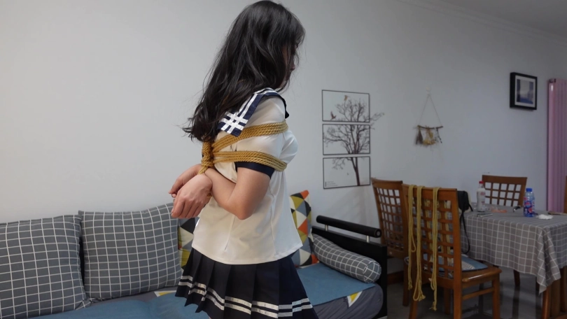 骚货清扬尝试cosplay,穿日本女高中生水手服给叔叔看,被叔叔用日式紧缚捆绑跪地,圆圆的[不可描述]被勒得紧紧的,天生敏感小m,口水流了一地,驷马捆绑后又被拎起,口水沾在白丝袜上,羞耻难当而又兴奋不已
