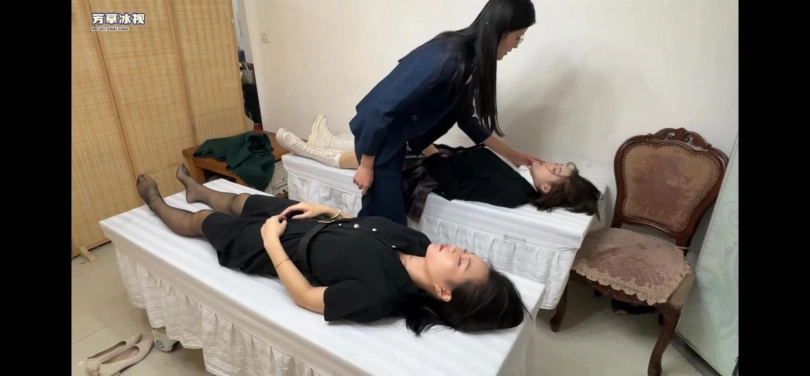 美女看到被弄晕的闺蜜,心生歹念想要玩弄她的身体,没想到被等候在此的女反派弄晕,最后两个美女都沦为了女反派的玩物。