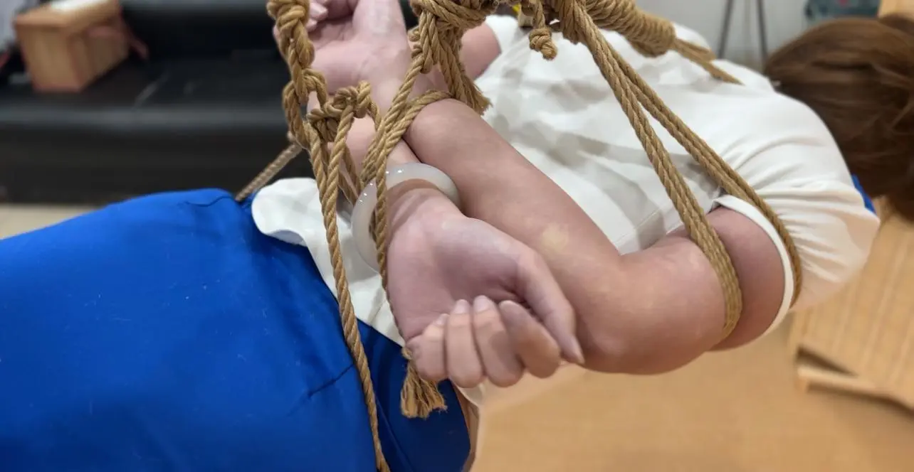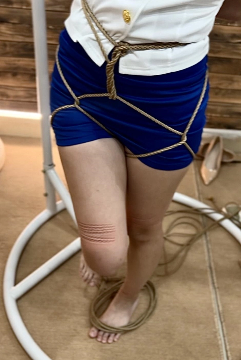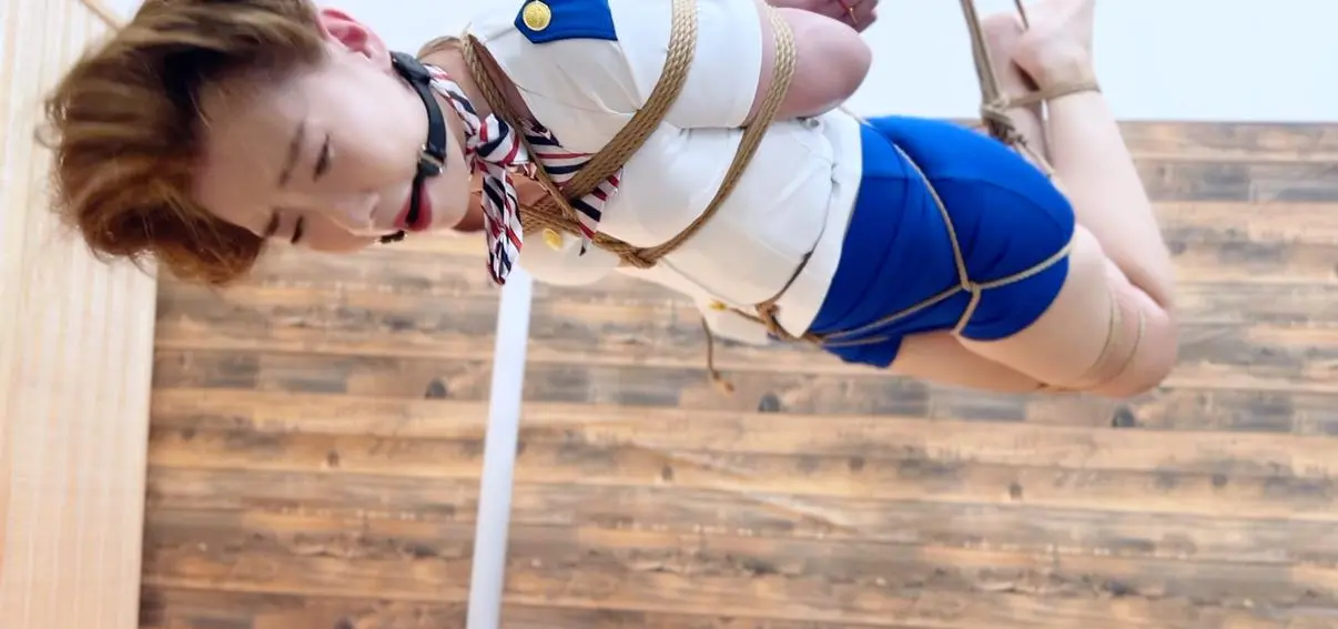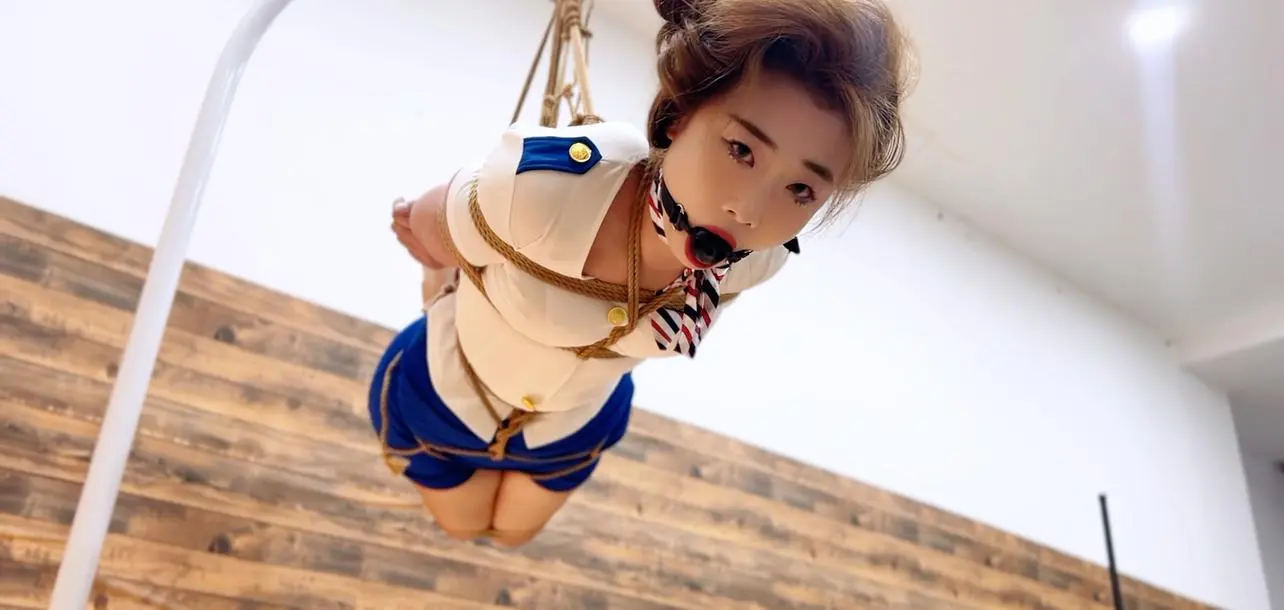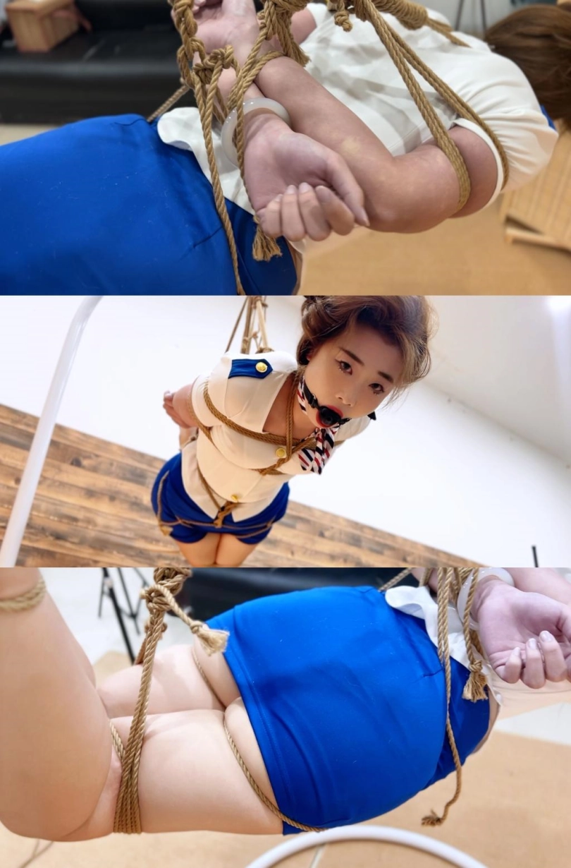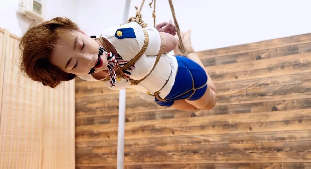 空姐装的小爽真好看。这是小爽第一次被吊起来,绳子都勒到肉里了竟然觉得很好玩!!很爽!!还左右扭动一种很享受的感觉!