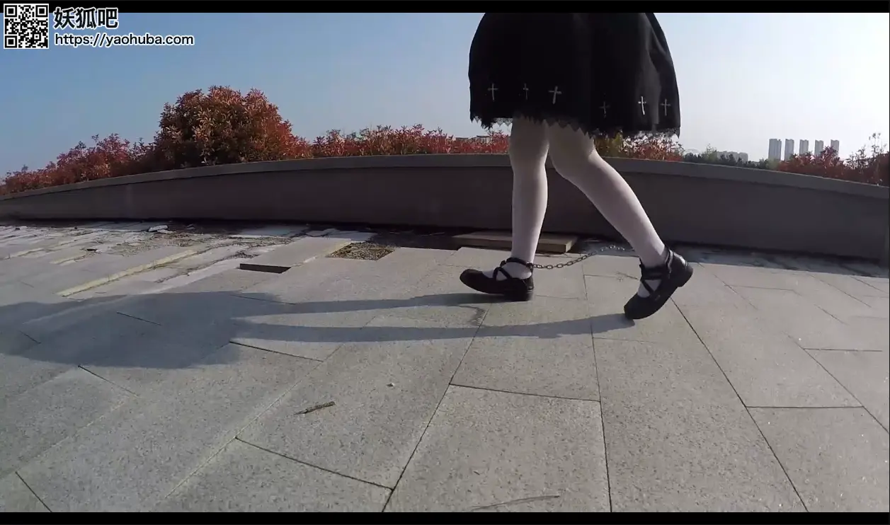跑了一半前方突然出现了路人 把模特吓了一跳 还好裙子可以遮住脚镣看不到