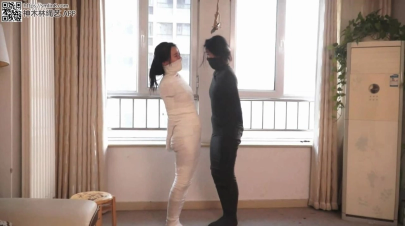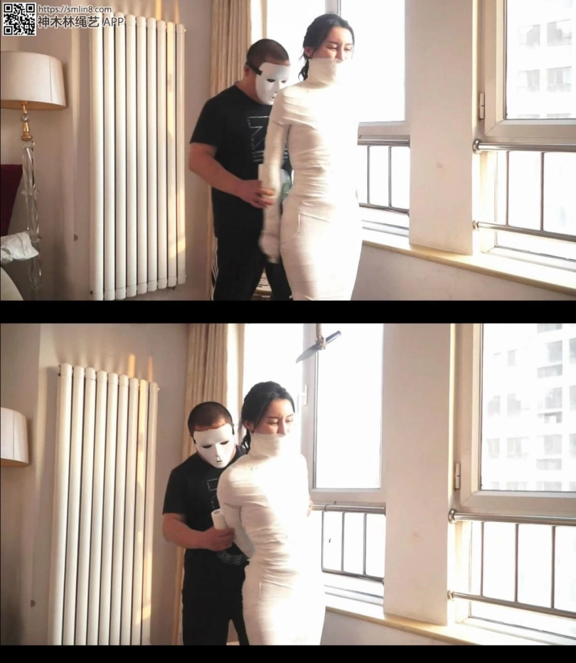 【文件大小】:588MB 上回说到2位美女被坏人迷晕并被捆绑成木乃伊,挣扎不能。 这是男人回来了,不知道他在搞些什么,他好像在客厅挂上了什么东西。 男人挂完东西就走了,这时2位美女才发现原来男人把一个小刀挂到客厅里。2个美女二话不说赶紧过来够刀子。 白色木乃伊美女根本够不到小刀,个子比较高的黑色美女赶紧想帮忙,但她平衡不太好,在费劲力气扭动半天之后才得以站起来。 让她们气愤的时好像是男人故意设计戏弄她们一样,她们用尽各种办法都不能把绳子解开。 漫长的时间过去,2位可怜的美女挣扎的满头大汗,小脸憋的通红。 2位美女几乎绝望的认定自己无法够到近在眼前的小刀,这快把她们气死了。 经过费力艰难的挣扎,白色木乃伊美女终于把腰部的绷带挣扎松了。 但她们发现自己居然白开心了一场,就算外面的绷带解开了,但她的手臂连同手掌也都被绷带包裹,握拳的小手根本什么都做不了,她根本不能帮她和同伴身上的拘束解开,甚至连小刀都够不到,也就是说她好不容易解开拘束,但却什么都做不到,急的可怜的美女呜呜直叫。 果然,没多久,男人会回来了,把她的手臂又捆绑了回去。 但这次男人没有停手,他好像还想加固捆绑的样子。。。。 ![]() ![]() ![]() ![]() ![]() ![]() ![]() ![]() ![]() ![]() ![]() ![]() ![]() ![]() ![]() ![]() ![]() ![]() ![]() ![]() ![]() ![]()