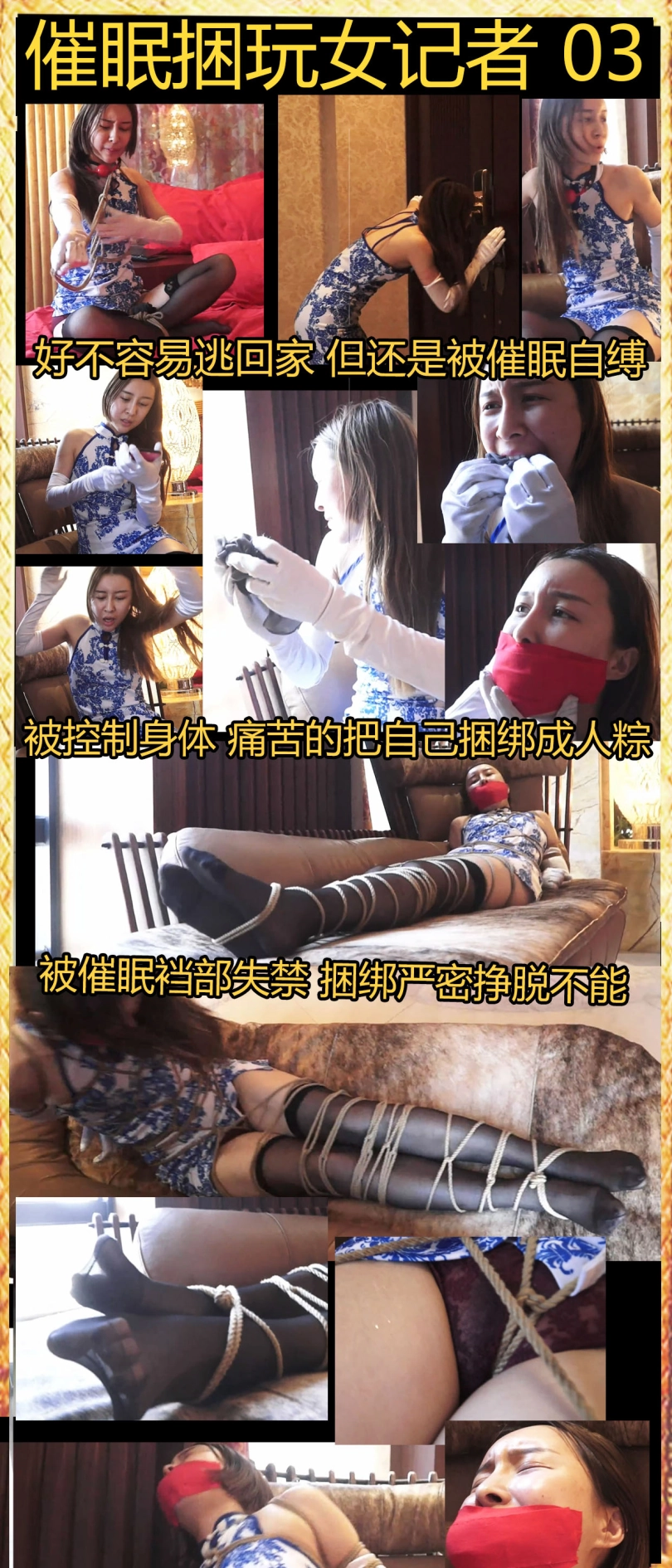 【视频时长】:00:21:24 【文件大小】:701MB 终于又回到我最擅长的剧情捆绑了,这次下了很大功夫去编写剧情,而且用的是我感觉逍遥演技最到位的佟娅,剧情一波三折,非常有趣,希望大家喜欢。 上次说到记者挣扎成功,开始解缚 美女回到家赶紧关门然后从猫眼紧张的张望,然后把门锁了起来。 她躺倒沙发上长呼一口气。 美女记者自言自语道“呼。。总算到家了,不行,我得赶紧报警把那个混蛋抓起来,不能让他逃了。” 美女找出手机,想报警。 就在这时,她拿手机的手开始发抖,手机掉在沙发上。 这时美女突然捂着脑袋,她感觉脑袋里出现男人的声音 男人的声音传入她的脑中“不要惊讶,这叫潜意识催眠,一旦你的手摸到手机这催眠就会自动启动,现在我要你自己把自己捆绑到最严密的状态。” 美女吓坏了,她赶紧想开门出去,但刚走2步就感觉丝袜美腿合并在一起,走不动了。她开始往回跳。 她身体不听使唤的从房间里找出了绳子,胶带,丝袜开始自缚。 她自己的手要把丝袜塞入自己嘴里,她一开始闭嘴摇头不想被堵嘴,但是最后还是被塞入了嘴里,然后胶带封嘴。 美女记者虽然紧张的大喊大叫,但自己根本不能控制自己的手臂,自己的手十分尽责的开始对自己最“严密”的拘束 果然,没一会,美女记者以超夸张的绳子密度把自己捆绑成了人粽。 美女玩命挣扎,但是没用,这时美女记者脑内又出现男人的说话。 男人的说道“如果你听到这段话,那说明你已经自缚完成了,自缚完成后你的潜意识会开始第2次催眠,你全身会变得越来越痒,如同无数蚂蚁在身上爬一样,除非你能自己挣脱才能解开催眠。” 美女听到后立马疯狂挣扎起来,但很快瘙痒就开始了,美女的双腿开始互相摩擦,丝袜脚也开始互相磨蹭。 美女记者内心独白“该死,全身越来越痒了,但我把自己捆绑成这样根本解不开啊,瘙痒越来越严重了,这样我再也没精力去解缚了。放过我吧!太痛苦了” 美女上半身也开始扭动挣扎,很快她就如同被电击一般全身扭动。 最后美女忍不住失禁了,丝袜和裆部都湿透了,美女记者痛苦的大叫,没想到自己都逃回家了还是不能自由,这下可怎么办啊。。 ![]() ![]() ![]() ![]() ![]() ![]() ![]() ![]() ![]() ![]() ![]() ![]() ![]() ![]() ![]() ![]() ![]() ![]() ![]() ![]() ![]() ![]() ![]() ![]() ![]() ![]() ![]() ![]() ![]() ![]()