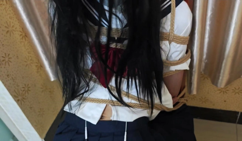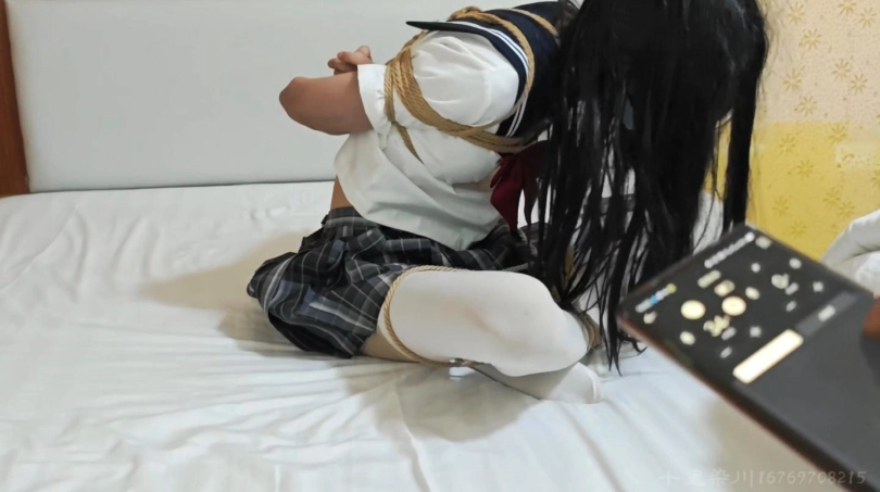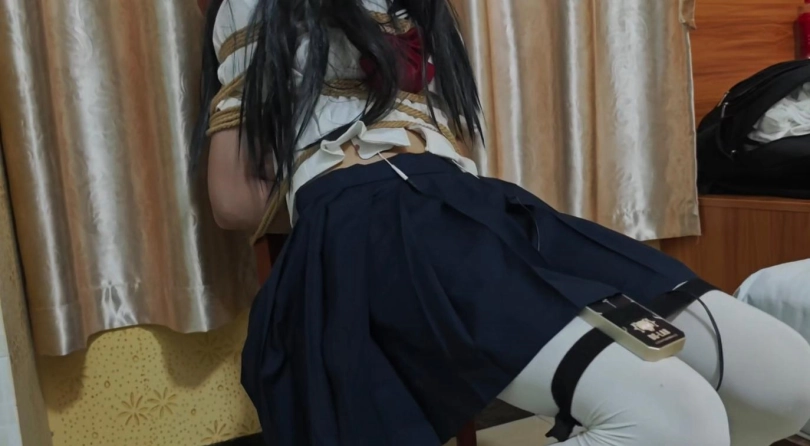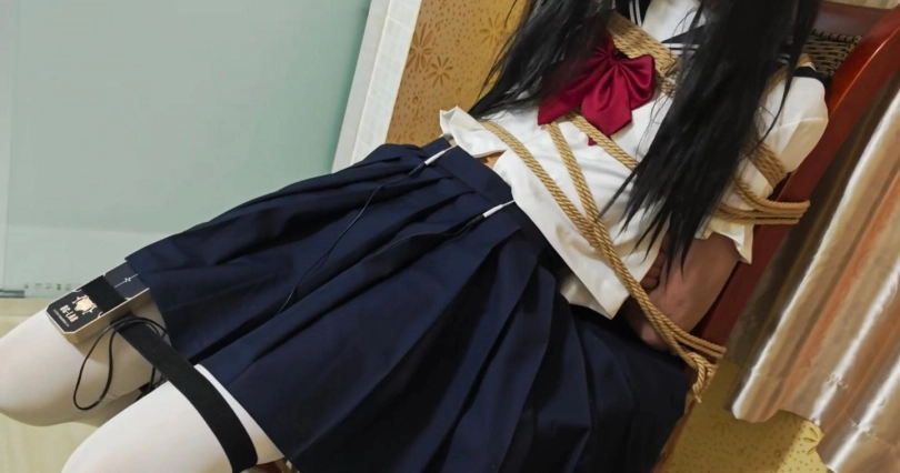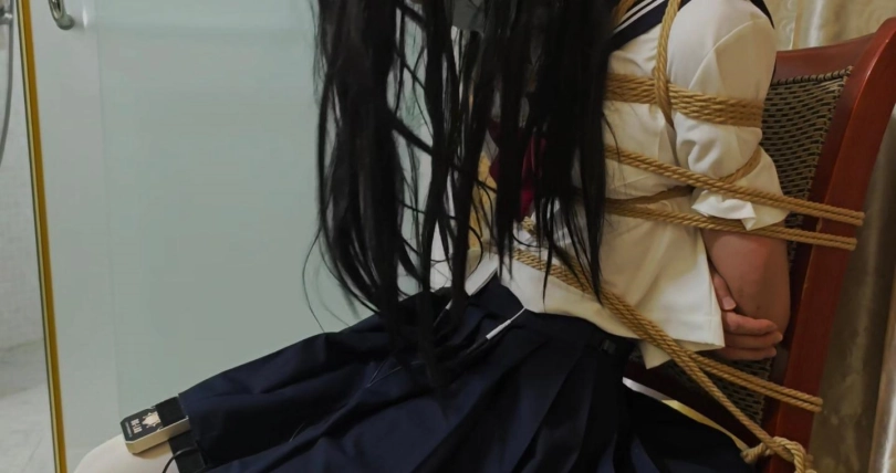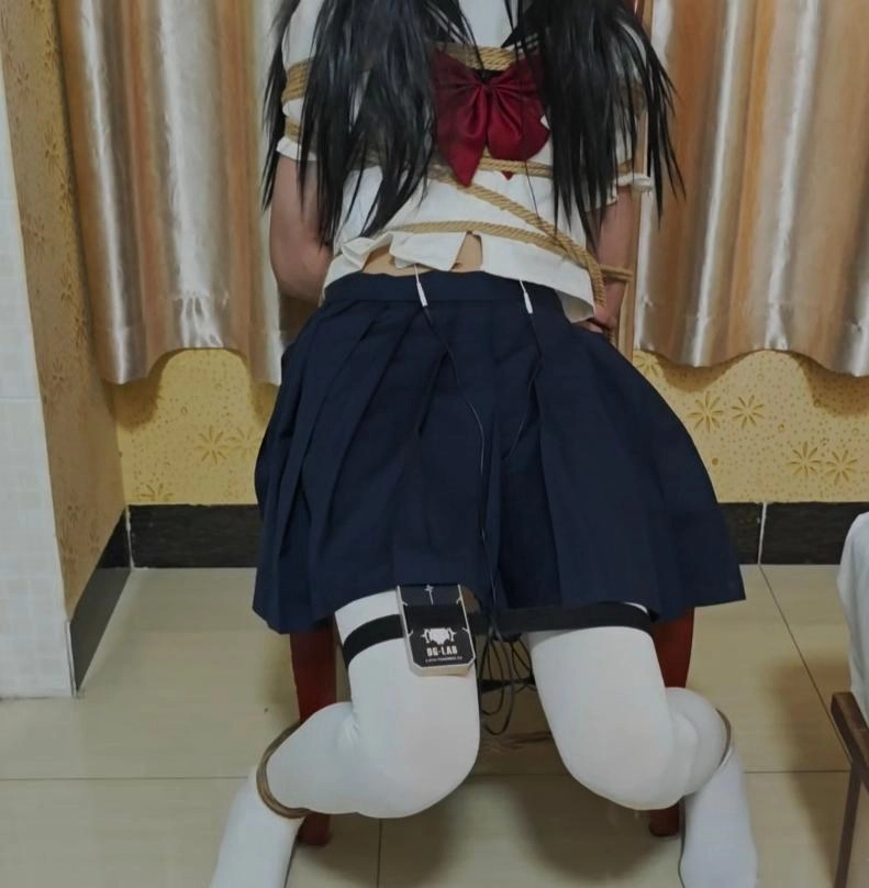 把小m捆绑在椅子贴上郊狼带上口球蒙眼。没有对话。只有呜呜呜!