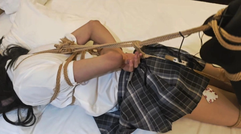 剧情三:丝袜全包捆绑塞上小玩具,带上口球,一刻也不让他消停