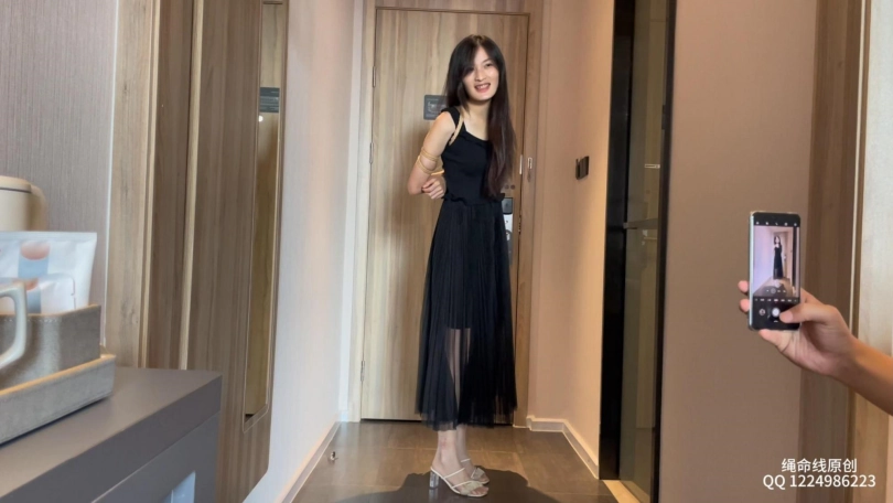 新模诗晴第一次体验捆绑,穿着黑色长裙过来,果断让她把肉丝穿上,然后给她来个开胃小菜,超紧五花绑脚放置挣扎。
