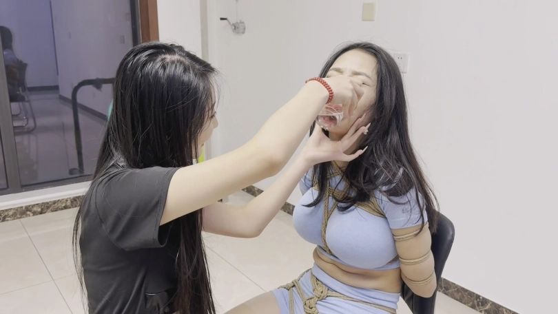 对两女的TJ手段不断升级,将二女驷马收集口水,强迫喝下对方的口水,然后丝袜堵上嘴,最后还要体验一下鞋子的味道。