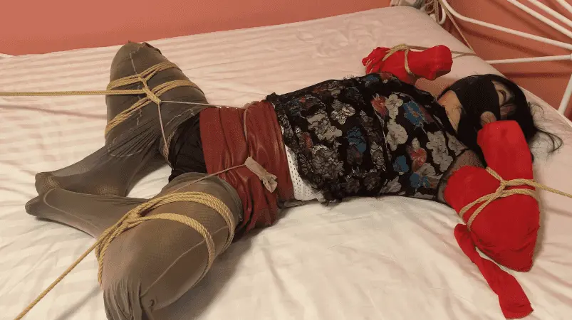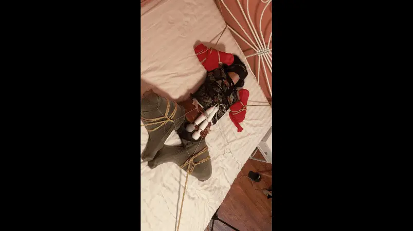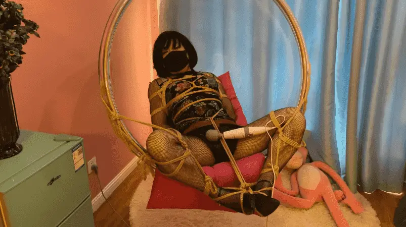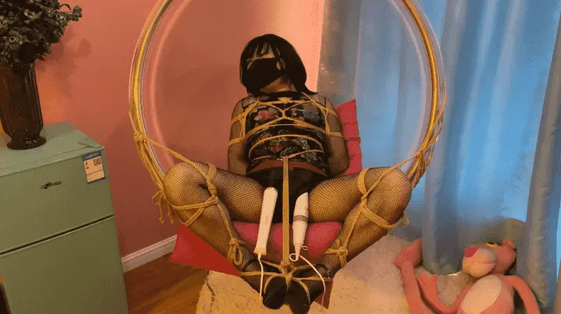 喜欢玩绳子的CD被日式捆绑M字开腿榨汁。 然后被折臂固定在床上榨汁。