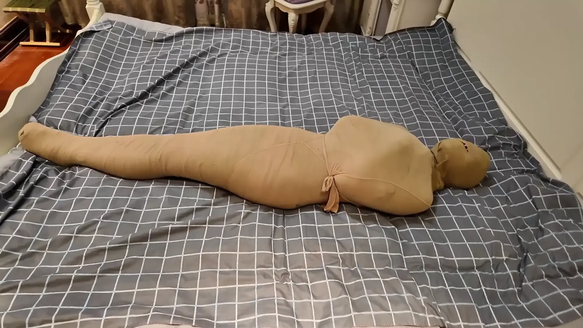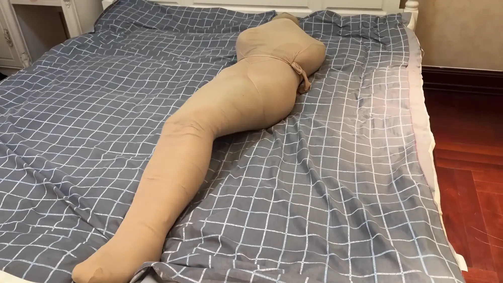 【视频时长】:00:31:51 【文件大小】:1889MB 绮雯今天穿着回到家,突然被人捂住了嘴,定睛一看,原来是他前男朋友。绮雯挣扎着,企图想逃开。这时,他男朋友把她摁到在地上,一只手抓着绮雯的两只手,防止她剧烈挣扎,另一只手捂住她的嘴。 男:在你这花费了这么多时间和精力,可不能就让你轻易走了 绮雯听后,瞪大了眼睛,用力的摇着头,但是最终还是被捂晕了。 醒来后绮雯发现自己被捆绑了起来,嘴被胶带封住了 绮雯只能拼命挣扎并试图爬到门口,过了一会男友回来了,他把胶带撕下来问。 男:怎么样,还好玩吧 女(苦苦哀求):求求你了,我不提分手了,放开我好不好。 男:现在说,晚了,正好一直有玩法没有试过,在你这试试手。 女:救命啊 才刚喊出口,男友就又往绮雯嘴里塞了东西防止她把别人喊来,男友看着绮雯今天穿着,动起了色心,便开始上手摸腿和脚,甚至还有身体,绮雯十分抗拒,但只能发出呜呜呜的声音,接着男友把绮雯解开后开始了新的捆绑。 男友先把她带回房间, 用绷带全包起来,也把绮雯的脚、一起包裹起来, 绮雯看着被包裹成虫子般的自己,非常着急,却没有一点办法,接着拿出丝袜套在她身上。她已经感到了呼吸困难,想挣扎但又使不上劲,只能眼睁睁的看着自己被包裹的严严实实。 ![]() ![]() ![]() ![]() ![]() ![]() ![]() ![]()