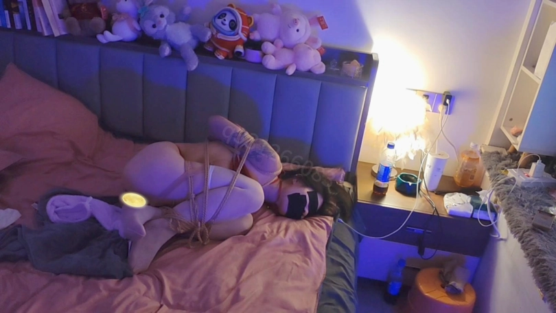 推开门,白丝情趣内衣,然后被捆成粽子一样,也不知道被捆了多久了,床单都打湿完了,,完全无法动弹,棒子固定,[X_X]塞入,白袜堵嘴,胶布封嘴,胶布蒙眼,然后打开开关,全世界的高朝感都属于小m一个人,床单几乎被打湿完了,全身瘫痪才在这里,最后才迎来了火力全开