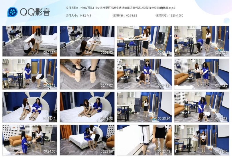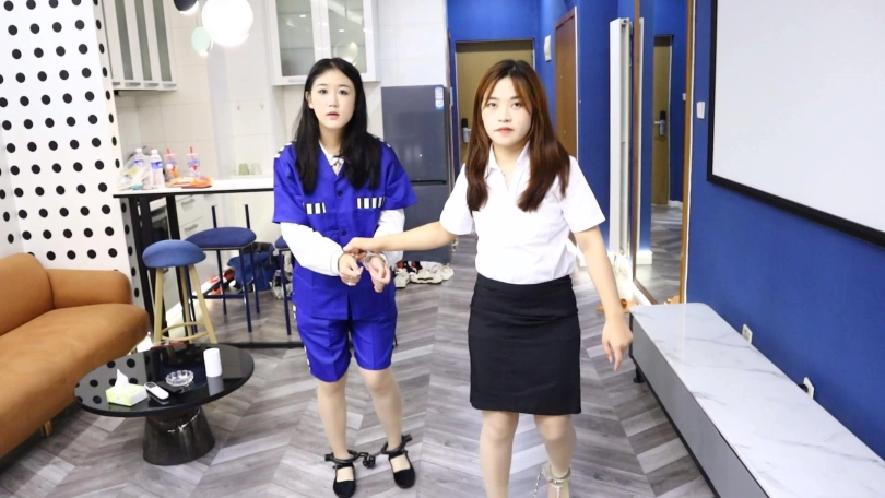 抓捕题材,可饰演贪污犯,小迪饰演女J官。可儿在家中被捕,换上囚服黑布鞋,被押走进行审讯,同时小迪J官自己也带上了脚镣,方便拉近距离感。然后可儿被拉到狱中,小迪还是不是进行教导,揉揉脚。最终可儿因贪污罪被判处死刑,临行前对可儿进行采访,最终被戴上口球处决。整件事完毕后,出于安全考虑,小迪还需要戴上镣铐观察几天。