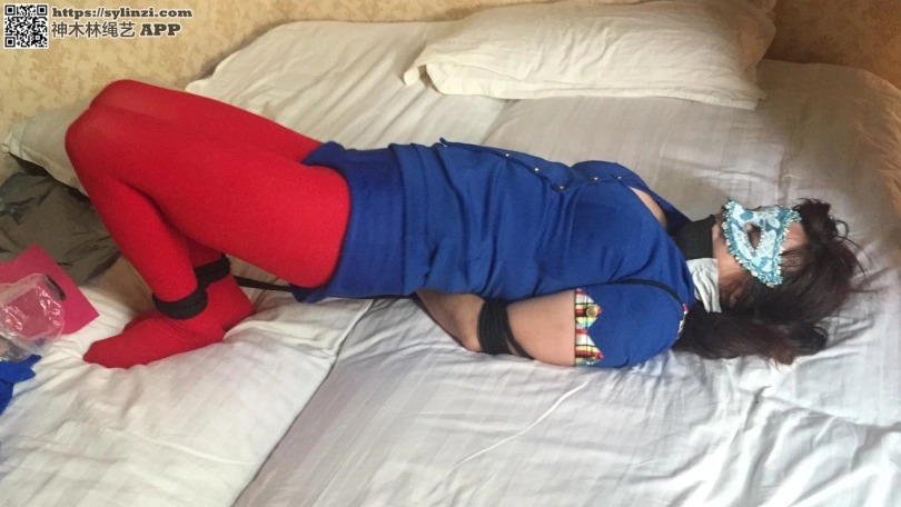 妖妖太吵 嘴一直叨咕没完, 哎 没办法,嘴里塞上丝袜 外面用绷带缠上。