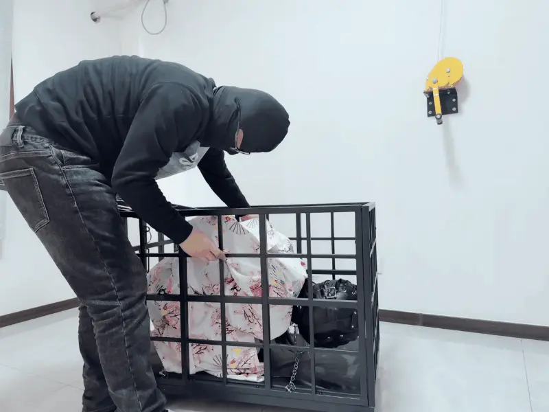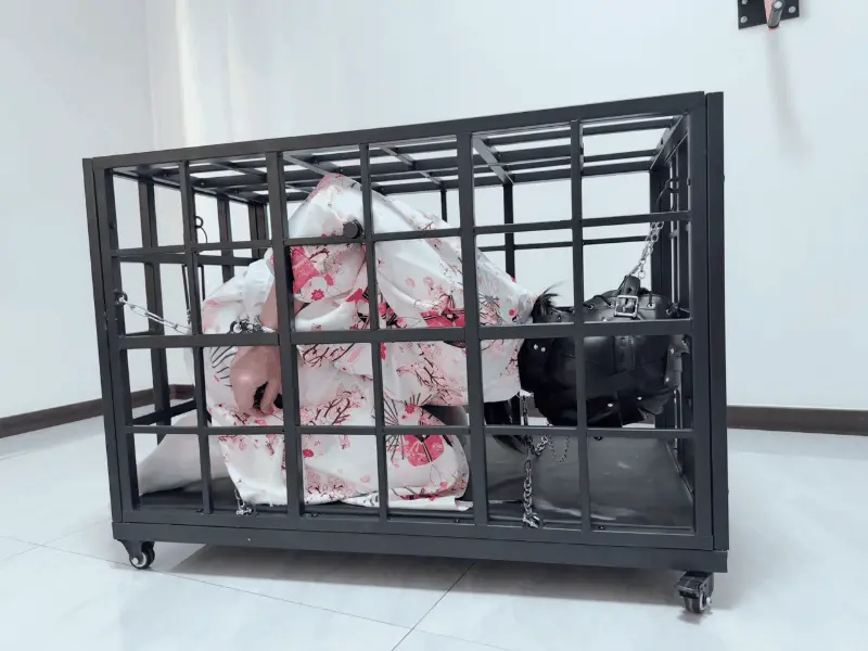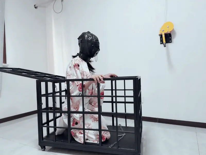 笼子固定,完全无法动弹。马具口塞下,口水横流。只留下琪琪一个人无助呻吟……