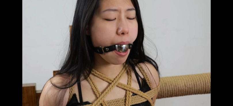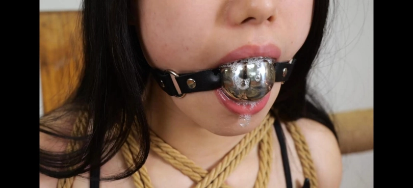 青春靓丽的清岚穿着性感的皮衣皮裙,修长的大腿一览无余,被银色金属口球和黑色马具口球轮流堵嘴大量口水流出,还有口罩和胶带封住嘴巴积累口水,挣扎和呻吟非常诱人,清岚现已退圈