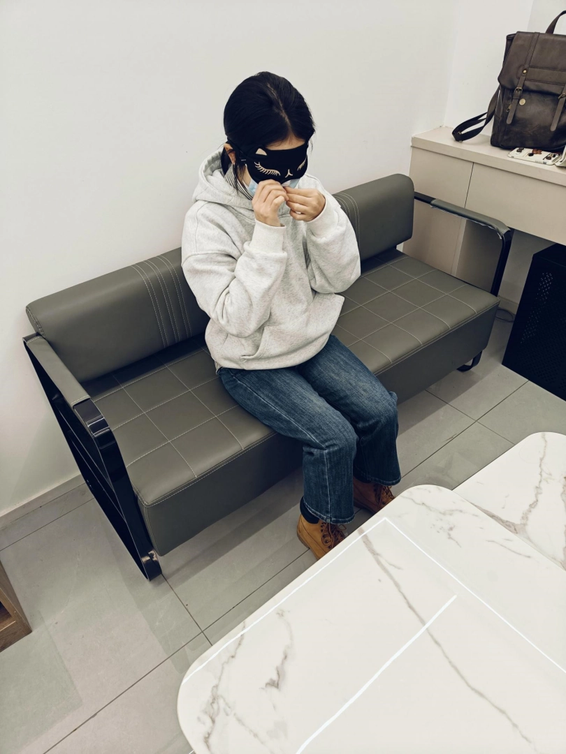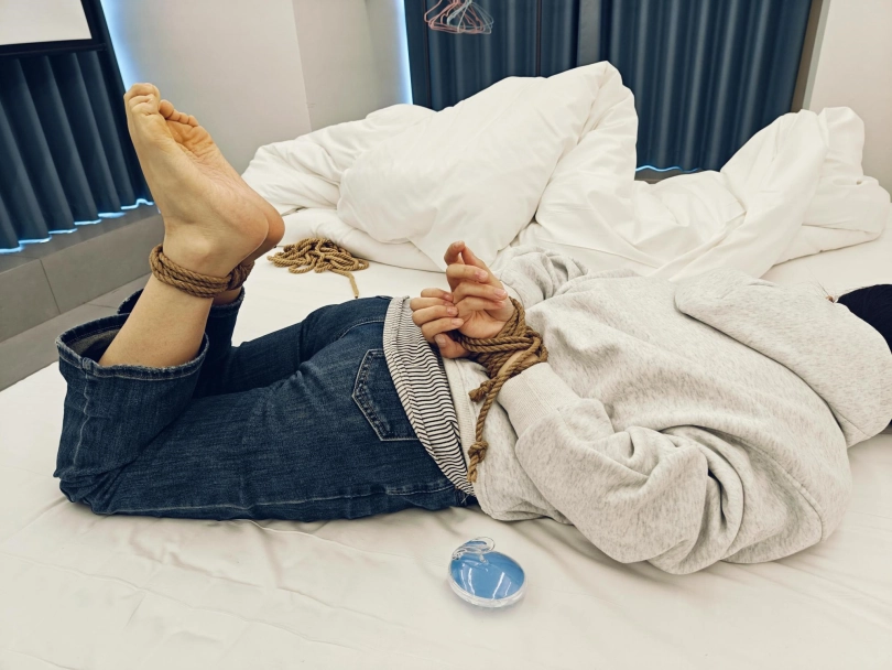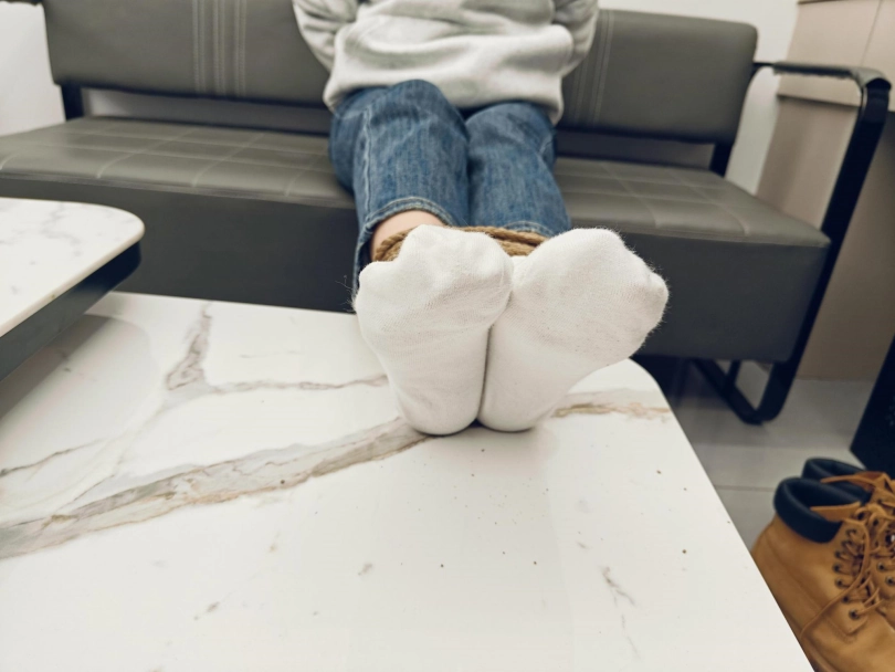 小鹿挠痒、脱鞋子的时候靴子非常难脱,小白袜有点脏,时间是下午拍摄,早早就要求穿很久的袜子,看来是穿了半天,比较怕痒的一个女生