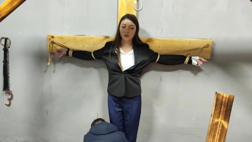 佳佳是一名公司高管,自己非常喜欢手铐脚铐,幻想着有一天你被带上手铐脚铐,拷打审问,这天她让男朋友和她一起去体验,老虎凳,十字架,X架,各种体验了一遍,最后带上手铐还想换囚服在体验一次