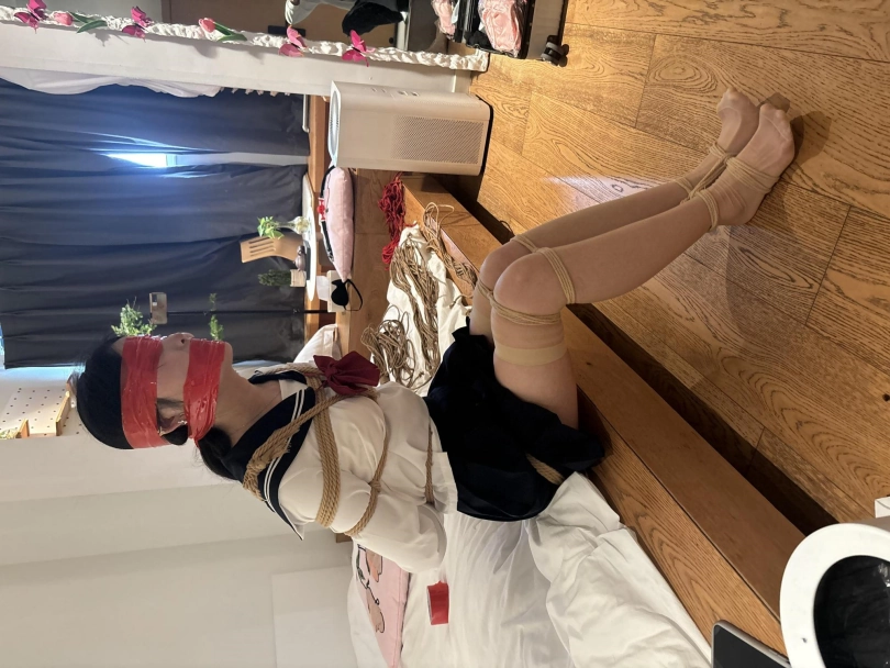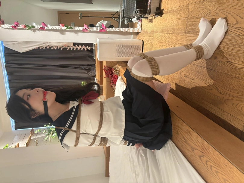偶然约到一位大二妹子雨柔,长相清纯可爱,第一次体验绳艺,有点羞涩,白丝+jk+口球+驷马+肉丝。