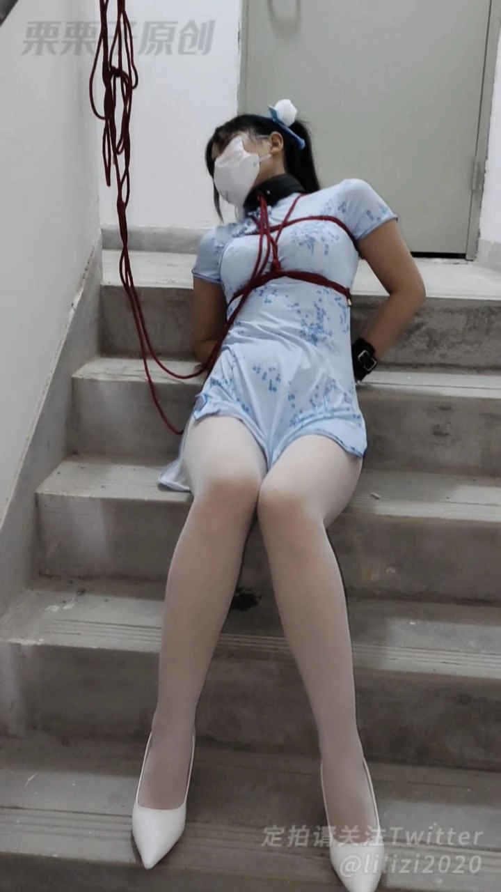 让旗袍女孩捆住自己,带上遥控的快乐蛋去楼梯间!