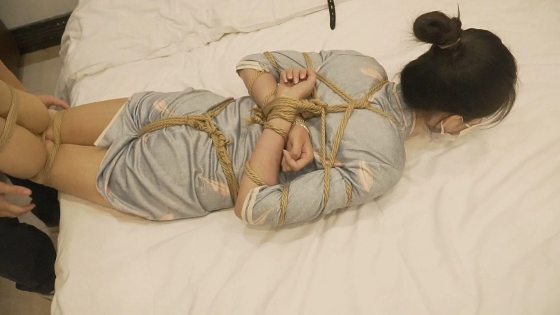 在四轮惩罚中小思取得了三轮失败一轮成功的成绩,将要被五花大绑驷马放置。小思换上了一身旗袍和中式五花非常搭配,戴上口球还用绳子向后拉,事后小思说被绳子一直牵引强制抬头非常难受。