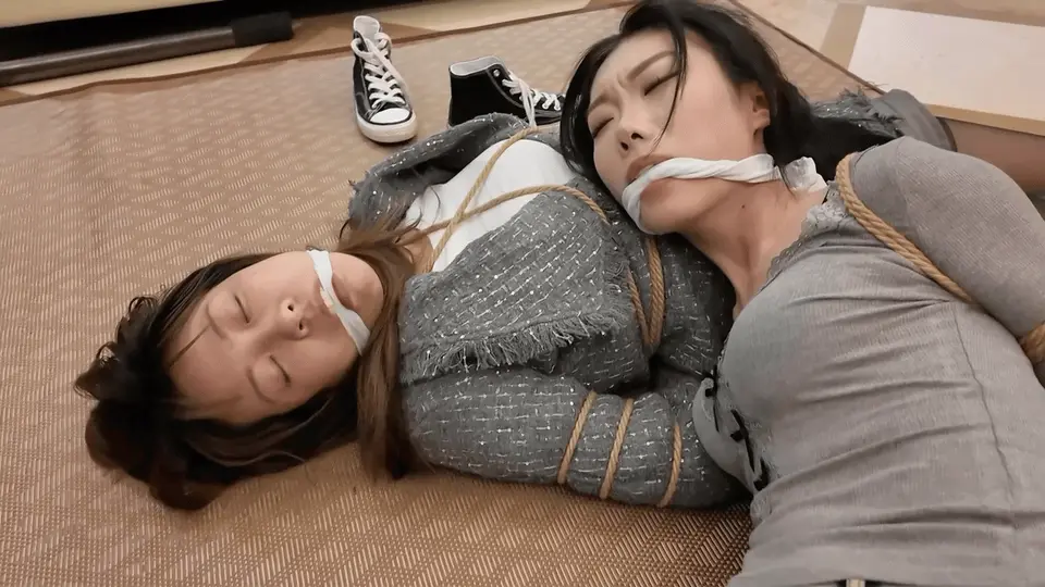 要素:五花胸缚、黑丝长靴开腿缚、捆绑搜身、布条+棉袜堵嘴、手脚连绑跌倒、痉挛扭动昏厥……