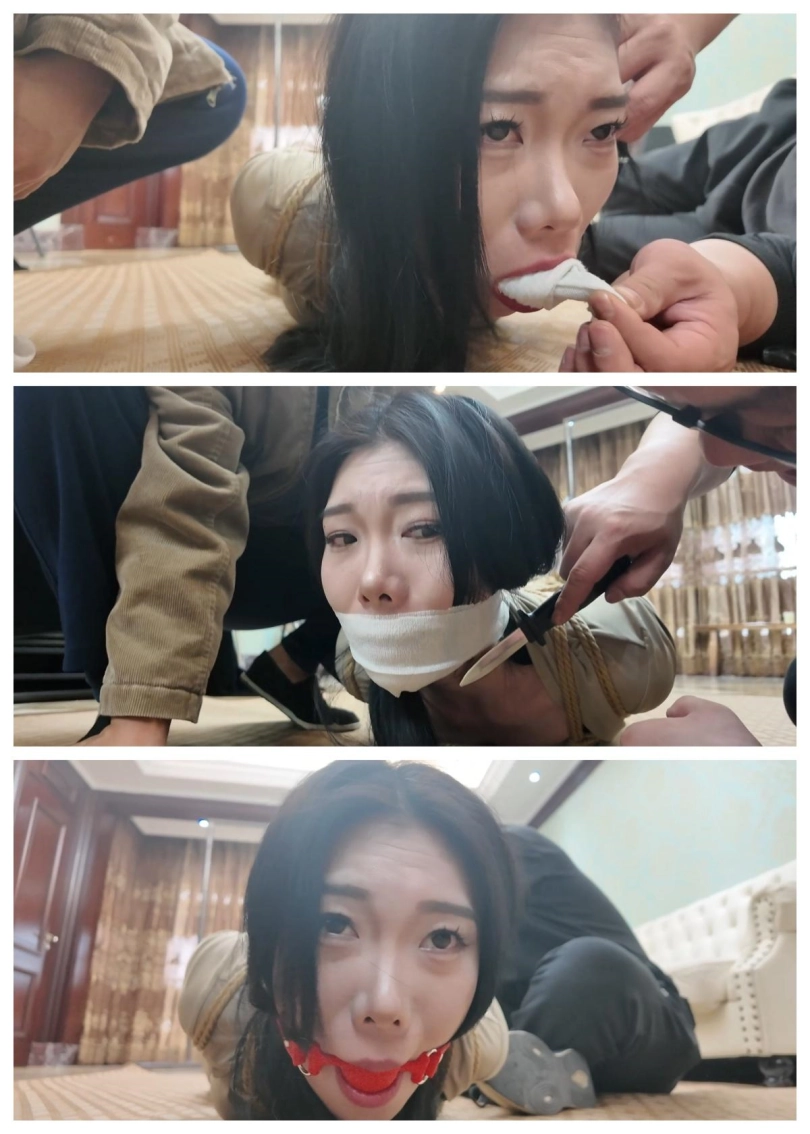 【视频时长】:00:34:33 【文件大小】:2784MB 此剧特色看点:两大美女--佳雯、芷溪。大雷与馒头的组合让大家一饱眼福;口、耳、眼五洞齐封,让喜欢感官封闭的看官欲罢不能,就想来一发;MPV后备箱里两美女就像两个货物般任人摆布,玩弄,运送,除了挣扎并呜呜呜无计可施。让喜欢绑架剧情的同好们想入非非,代入感极强。 剧接上回,芷溪身着瑜伽服,瑜伽裤,白棉袜被直臂紧缚驷马倒攒蹄捆绑在房间中,嘴巴被严密封堵使她无法呼喊,驷马倒攒蹄使她只能扭动着身体朝门外逃跑,可这难于登天。门外的小偷取到了钱又叫来了一个绑匪同伙,想着从芷溪身上再捞一笔钱,二坏人进门,就看到挣扎的芷溪,于是将芷溪抬到了客厅,为了惩罚她的不老实对她进行拳打脚踢,威逼利诱,拍照侮辱。对芷溪一番折腾后,用到逼问出芷溪钱财的位置,并得知芷溪还有个有钱的姐姐,问到信息后,二人仍没有对芷溪怜香惜玉的意思,等待芷溪的是一个口球紧紧塞入芷溪的嘴里,接着再脑后紧紧扣住,芷溪吃疼却只能发出呜呜呜的声音。接着二人将芷溪挣扎录成视频,将视频发给芷溪姐姐,以此威胁芷溪姐姐(大雷)要赎金来救芷溪。可穷凶极恶的绑匪哪会只想拿赎金那么简单呢?二人商量一不做二不休,趁着交换赎金的机会,把大雷一起绑架了。一拍即合,二人给肉货芷溪换了套衣服,接着重新五花大绑手脚,然后为方便行动,二人将耳塞塞入芷溪耳朵里,然后用黑色胶带缠绕封住她的眼睛,再用白布蒙眼,这下芷溪就是听不见也看不见了,虽然二人一人摁住芷溪的头,一人用黑色头套把芷溪的头牢牢套上,把芷溪严严实实的进行了感官封闭,为了防止芷溪叫喊,二人又用红色口球堵塞了芷溪的口部,刚芷溪看不见,听不见,叫不了,动不了,成了一件人人随意摆布的肉货!二人将肉货(芷溪)抬上了MPV的后座,在车上也不能让芷溪放松一下,坏人脱了她的一只鞋子,用力挠她的脚心,听着芷溪被挠脚心而发出的呜呜呜呜呜声音好不享受。一会,到达交易地点,二人把芷溪关在后备箱,然后下车等候来交赎金的大雷,大雷来到了后提出了要先验货,于是二人打开后备箱,大雷看着车上五花大绑,黑头[X_X]头,红色口球堵嘴的少女,提出疑问:戴个黑头套,我怎么知道是不是我妹妹?绑匪说到:你自己上去把头套取下来就知道了。大雷上车取下了芷溪的黑头套,看到了就是自己的妹妹芷溪说了句:妹妹你受苦了。可一会,绑匪也上了后备箱并关上后备箱门,这下,大雷也一起受苦了。后备箱里,绑匪用到威逼大雷,让她不敢动弹,然后又用麻绳将她捆绑起来,捆绑结实后,用一只白色棉袜塞入大雷嘴里,然后用五张布基胶带将大雷嘴巴封上,这下大雷也是手脚不能动,嘴不能喊叫了。被控制并捆绑堵嘴后的二女成了两名猥琐绑匪的玩物,二绑匪玩弄二美女,挠脚心,挠腰,挠胸全都安排上了。二女也只能呜呜呜挣扎,玩累的二绑匪决定将二女运回关肉货的地方,于是发动车辆,出发。发车后,二女在后备箱挣扎并呜呜呜但也无济于事,只能等待命运的安排! ![]() ![]() ![]() ![]() ![]() ![]() ![]() ![]() ![]() ![]()
