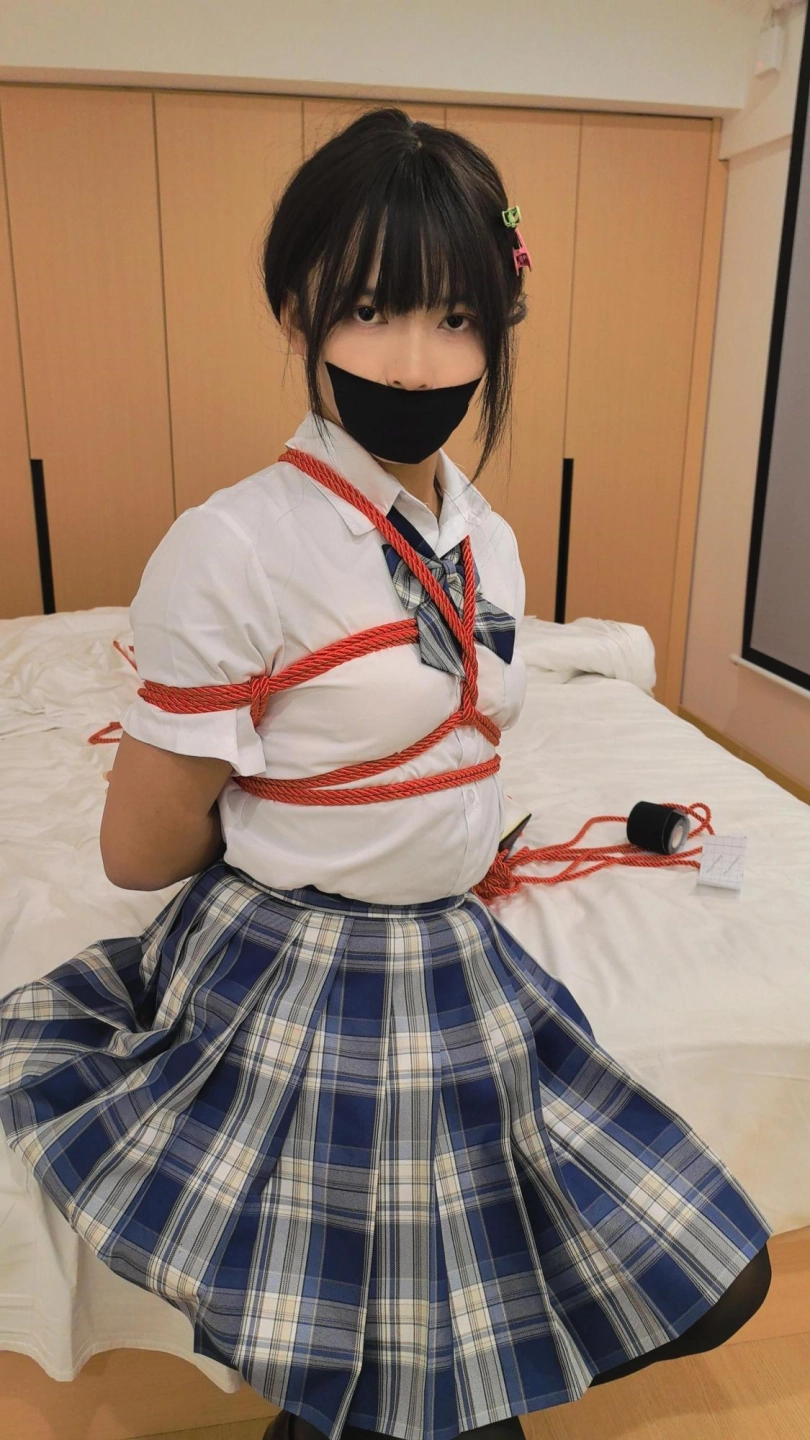 换上蓝格JK之后在柜子里睡了一夜之后,拉出来浴缸play!