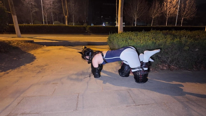 公园里的人形犬 霜喵k9户外爬行调教 sp 抚摸[X_X] 死库水配白丝双马尾 长距离爬行