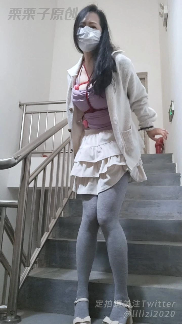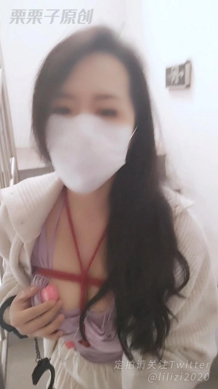 女主播被要求捆上绳子,带上快乐蛋,拷住双手,在有可能会有人发现的楼梯间高高!