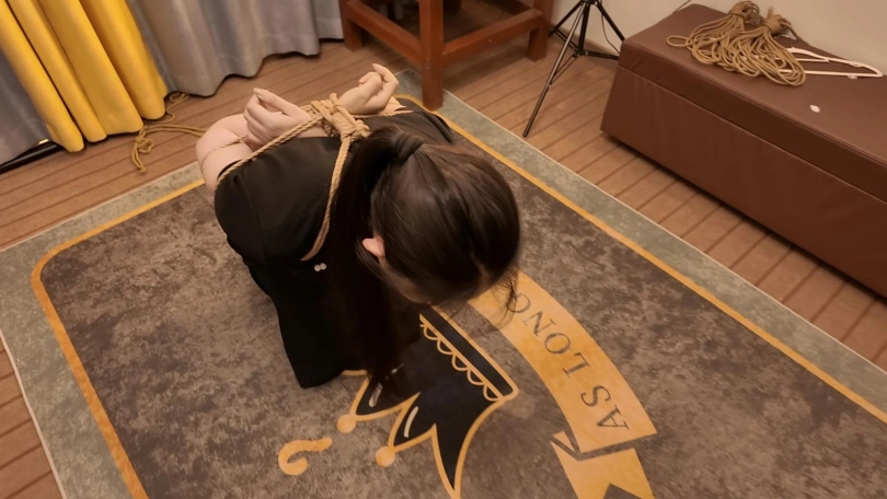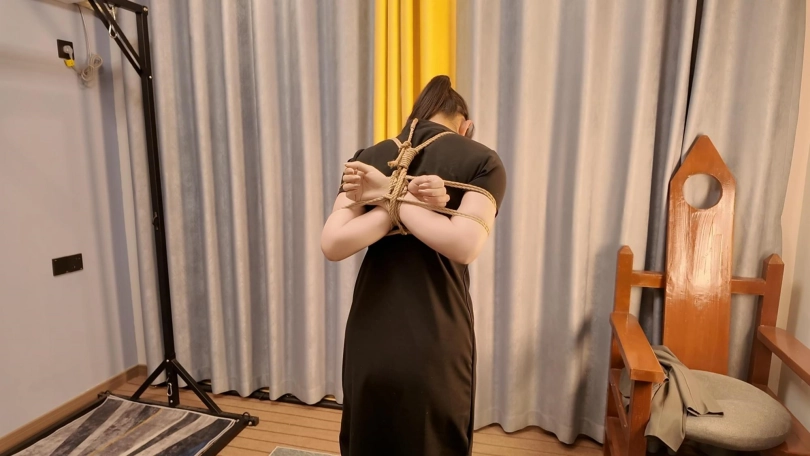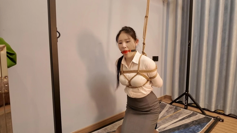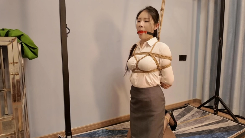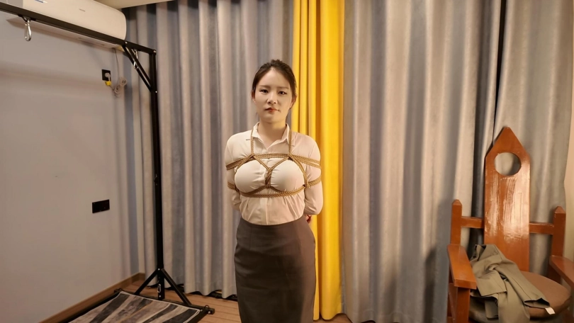 今天面试一名新模,新模娜娜、形象不错,来面试就要先捆起来试试柔韧性,接受度,先捆个日式放置,在给带上口球,真不错,第一次就能接受口球,紧缚放置,既然来了一个姿势咋能够,在来个后高手,捆的太紧了,坚持没一会就喊疼了,第一次,先放过她,留着慢慢培养,一个不错的好苗子.....