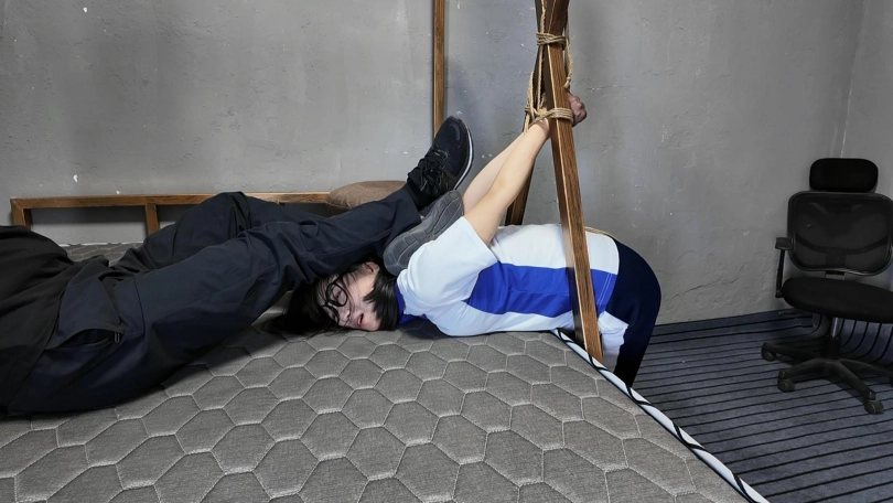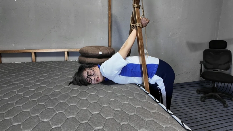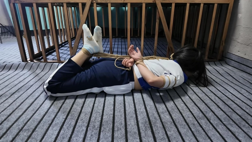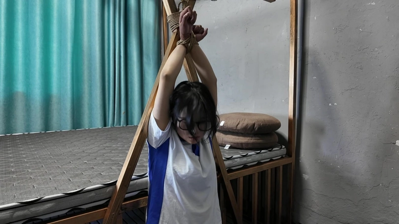 小遥被抓起来之后,关押在床底下的笼子里,劫匪把小遥拉出来,捆绑成驷马,准备卖掉,小遥在房间里面拼命挣扎,好不容易挣脱开,准备逃脱,被刚好进来的劫匪抓住,这下把小遥绑到床上,拿起皮鞭一顿抽打,打的小遥嗷嗷直叫,皮鞭打不过瘾,又打耳光,最后小遥求饶,在也不敢跑了,被关到笼子里等候买主