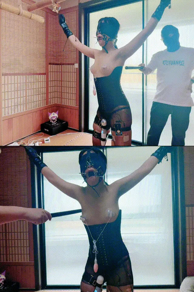 长达一小时的罚站架体验,固定好完全无法挣脱。双手吊高,极致电击调教,黑丝小M不自觉全身抽搐,长时间TK下无法反抗。